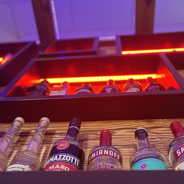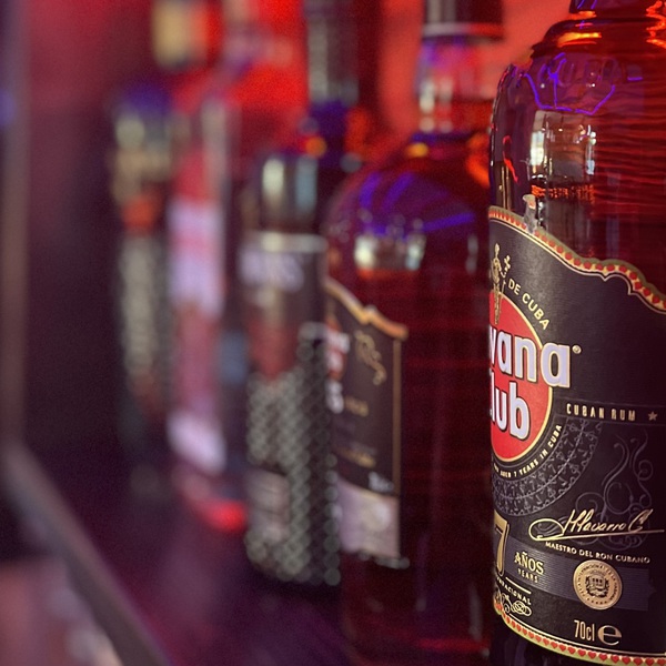 in eine exklusive Cocktailbar mit fruchtigen Cocktails, leckeren Drinks