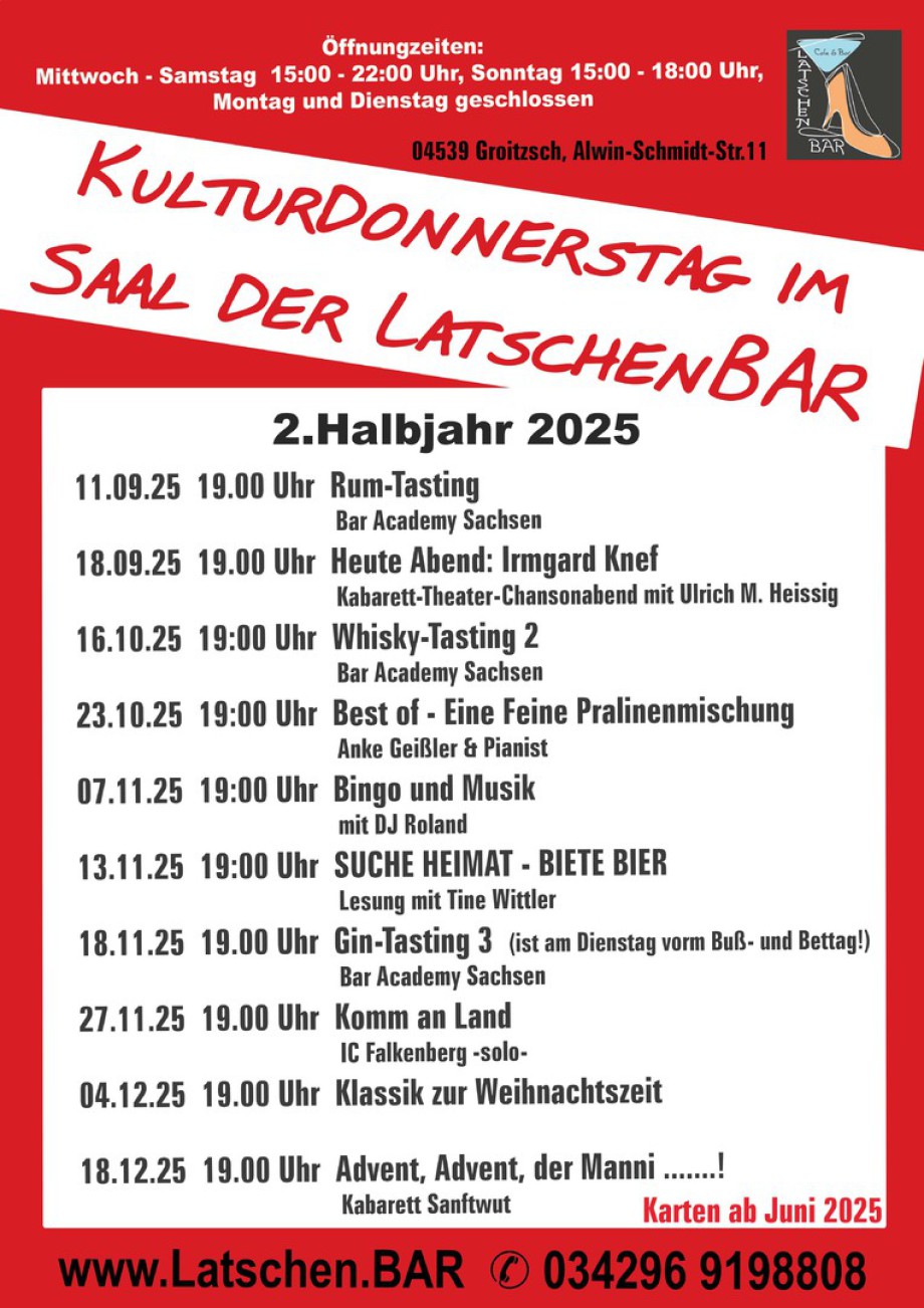 Auszug aus dem vielseitigen Veranstaltungsprogramm zum Kulturdonnerstag